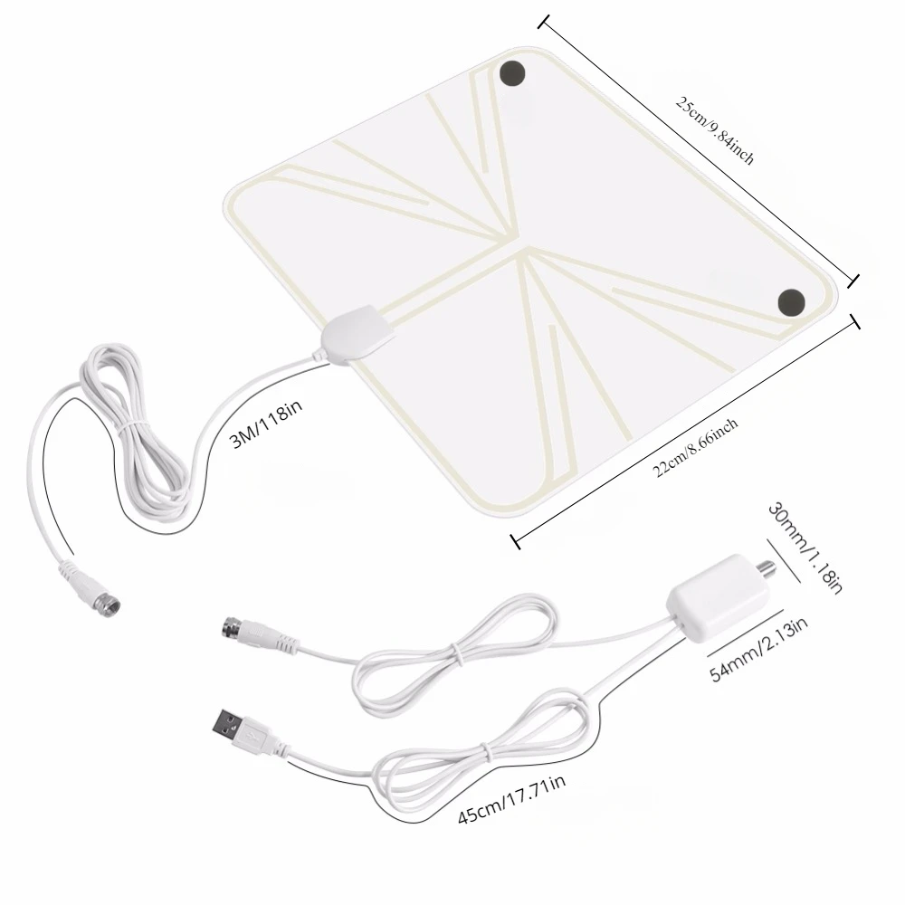 Digital TV Antenna with High Gain, 4K DTV Box Plug EU 5000 Miles Booster, Active Internal Antenna, HD Flat Design