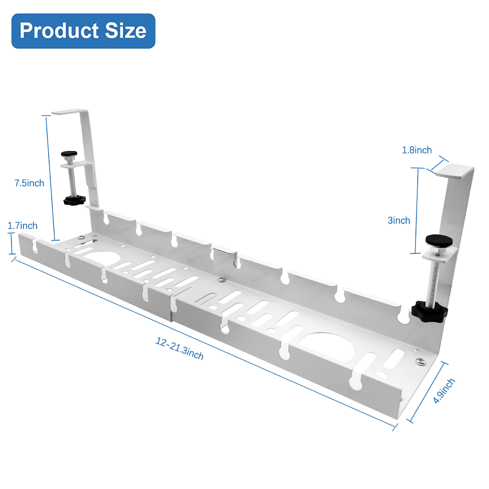 No Drilling Extendable Under Desk Cable Management Metal Cable Tray Under Desk with Clamp Retractable Power Strip Cord Holder